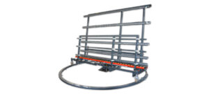 Rulliera z pionowym oparciem do logistyki i magazynowania okien.