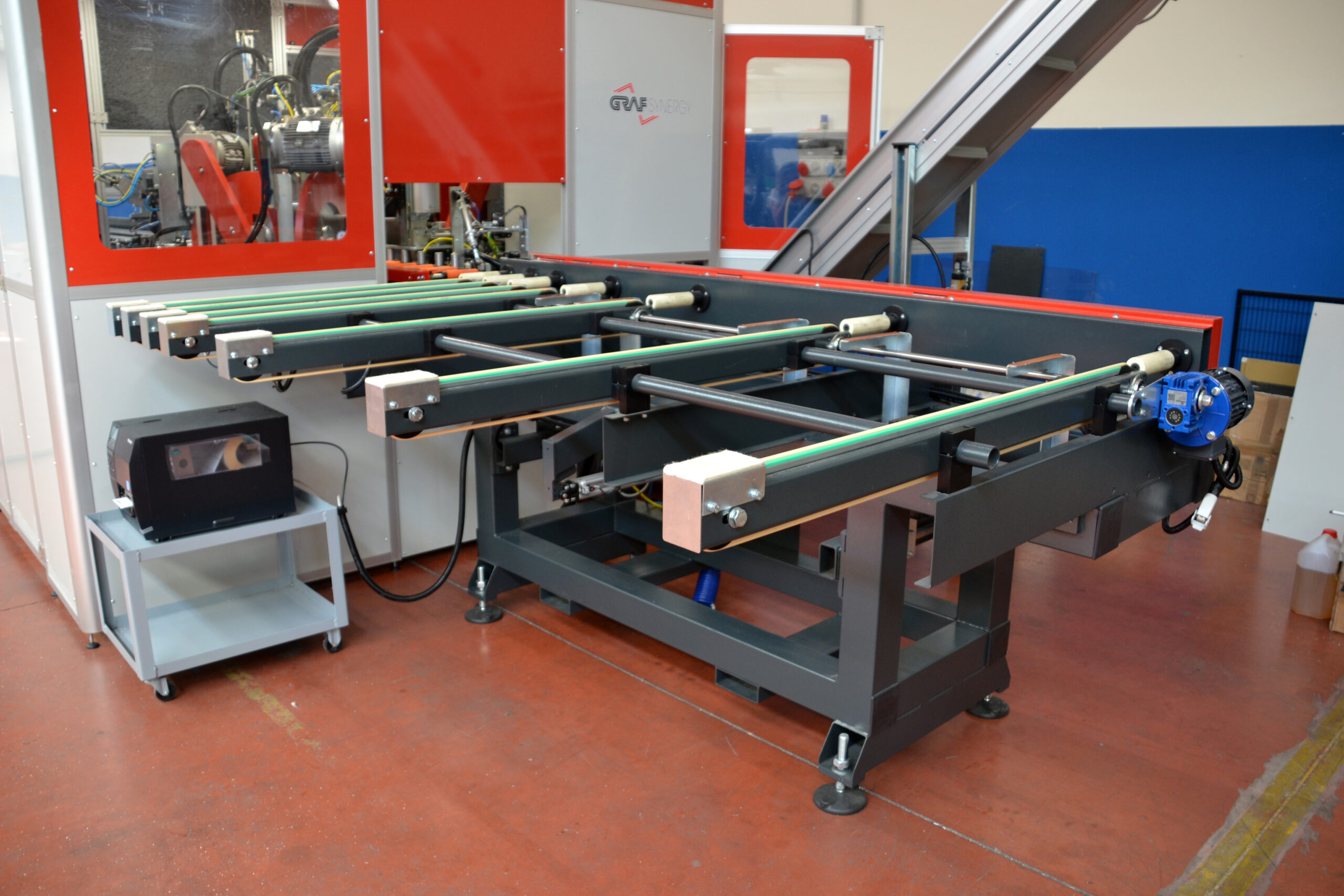 - Stół wyładowczy z napędem z wyjściem po przeciwnej stronie