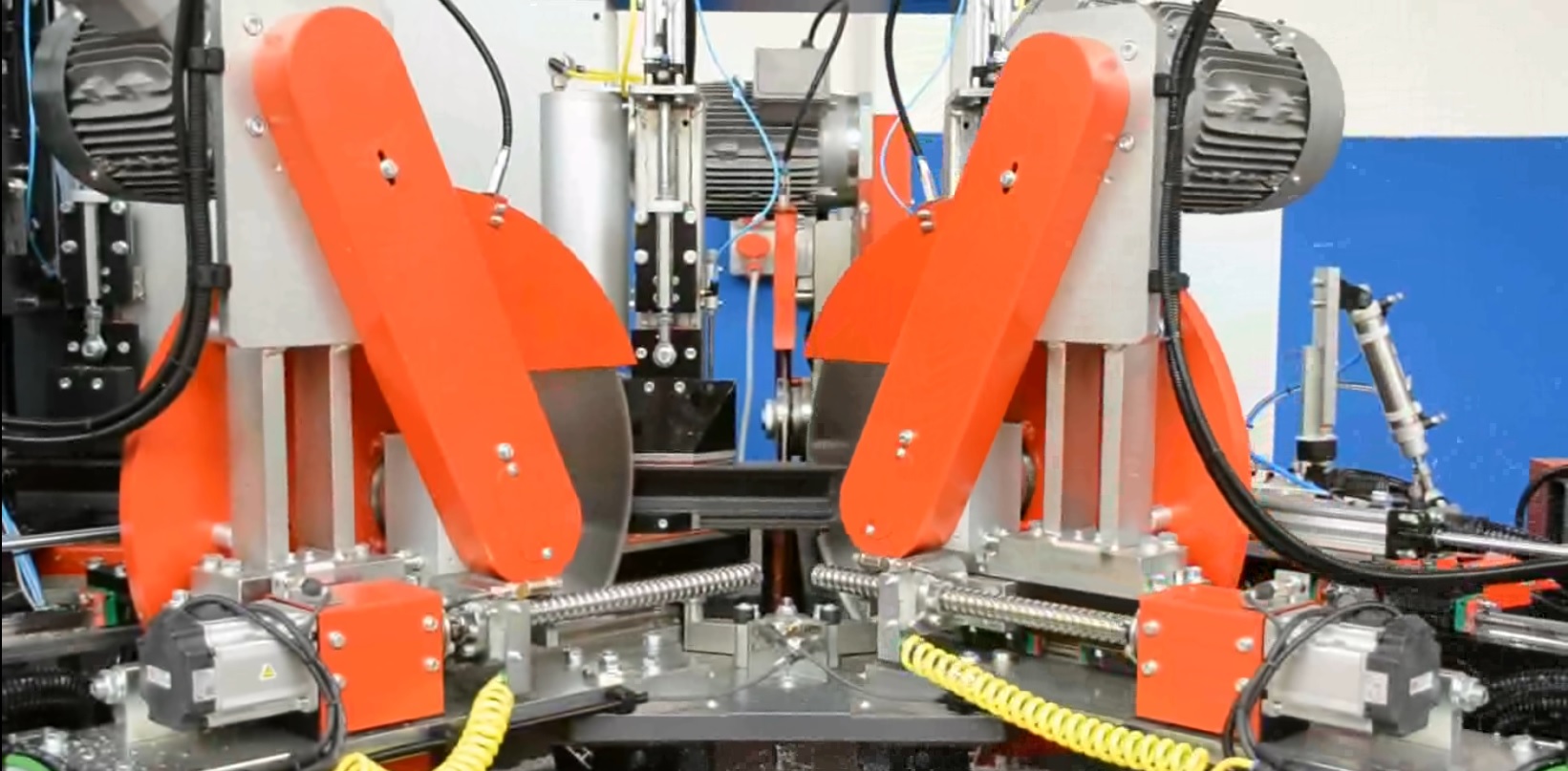 Profil jest blokowany przez oś podłużną, która zapewnia stabilność i precyzję podczas każdej operacji. Moduł tnący wyposażony jest w ostrze o średnicy 500 mm z kontrolowanym CNC ruchem w górę, co umożliwia precyzyjne i powtarzalne cięcia pod kątem -45°, 90° i +45°.
