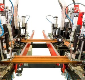 SL4FF WD wykonuje jednoczesne spawanie poziome czterech narożników ramy, z uszczelką zintegrowaną w cyklu. System CNC zapewnia absolutną precyzję w wymiarach operacyjnych oraz w zarządzaniu termicznym topnienia i kompresji.