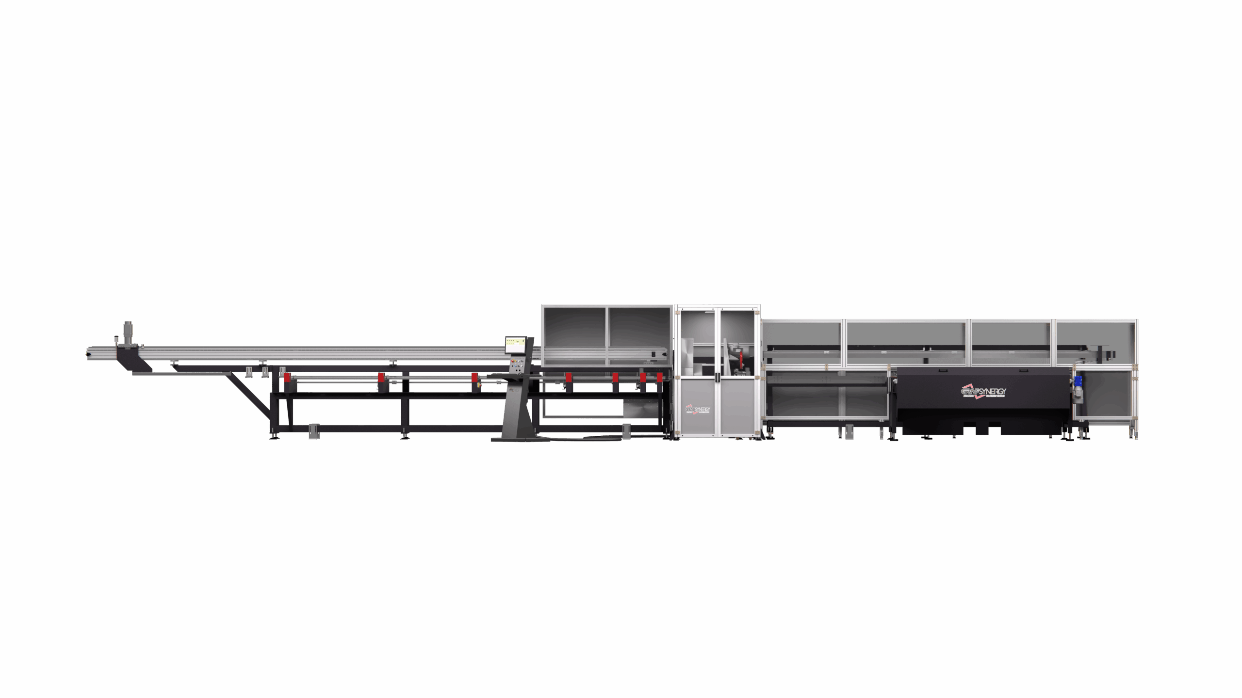 Automatyczne magazynowanie dla 10 prętów, załadunek za pomocą łańcuchów, pchacz z przekładnią z silnikiem bezszczotkowym. - Moduł tnący: