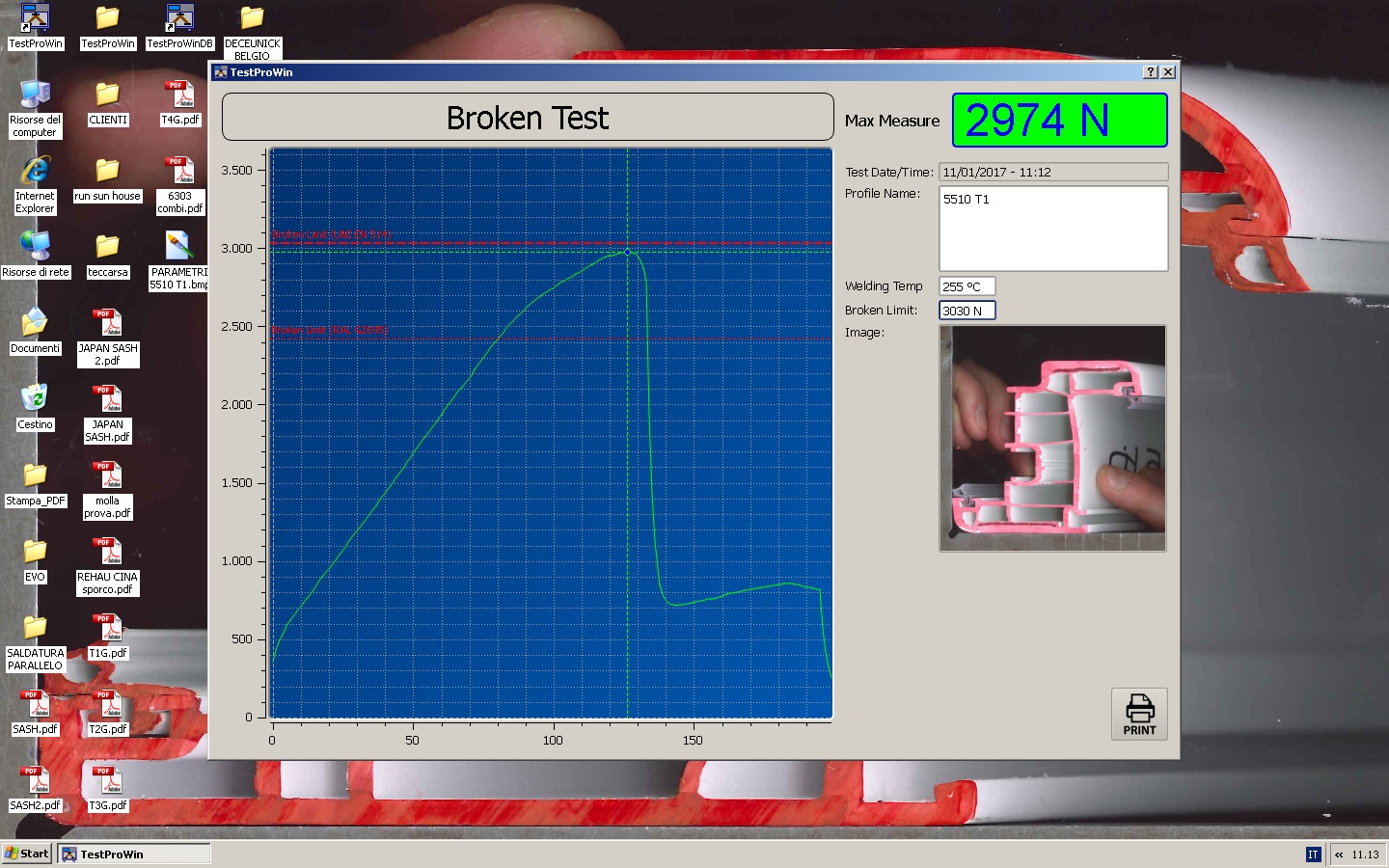 Test Pro Digital umożliwia przeprowadzanie prób niszczących w celu pomiaru wytrzymałości mechanicznej spawanych kątów z PVC. Test jest wykonywany poprzez stopniowe stosowanie siły aż do momentu zerwania połączenia, rejestrując osiągniętą maksymalną wartość.